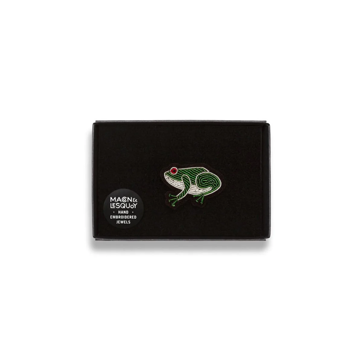 Macon & Lesquoy signe une adorable Broche Grenouille brodée à la main. Parfaite pour apporter une touche de pep's à sa garde-robe, elle permet de personnaliser avec style ses tenues. Véritable bijou, elle peut autant s'épingler sur une veste que sur un pull ou un sac. Ces accessoires textiles se portent à la manière d'un bijou, pour signifier un état d'esprit optimiste et ludique... Disponible en plusieurs modèles. Fabriqué au Portugal.