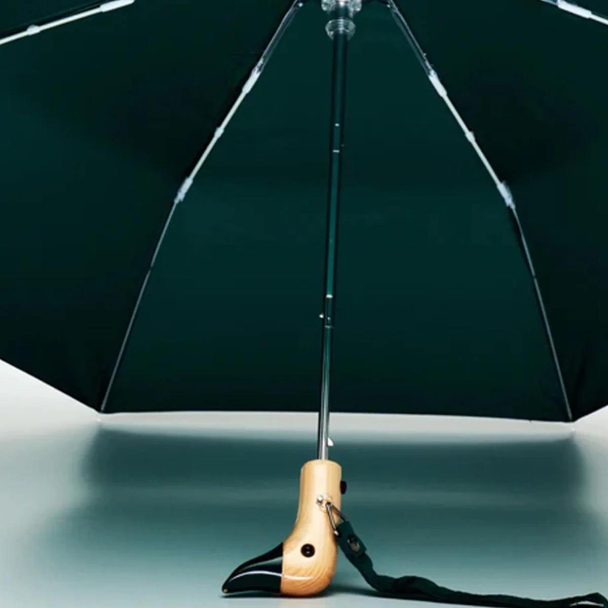 Abritez-vous sous ce parapluie à la Tête de Canard Vert Forêt d'Original Duckhead aussi original que durable ! Les parapluies sont fabriqués à la main à partir de bouteilles en plastique recyclées et de bois de bouleau massif pour le manche.