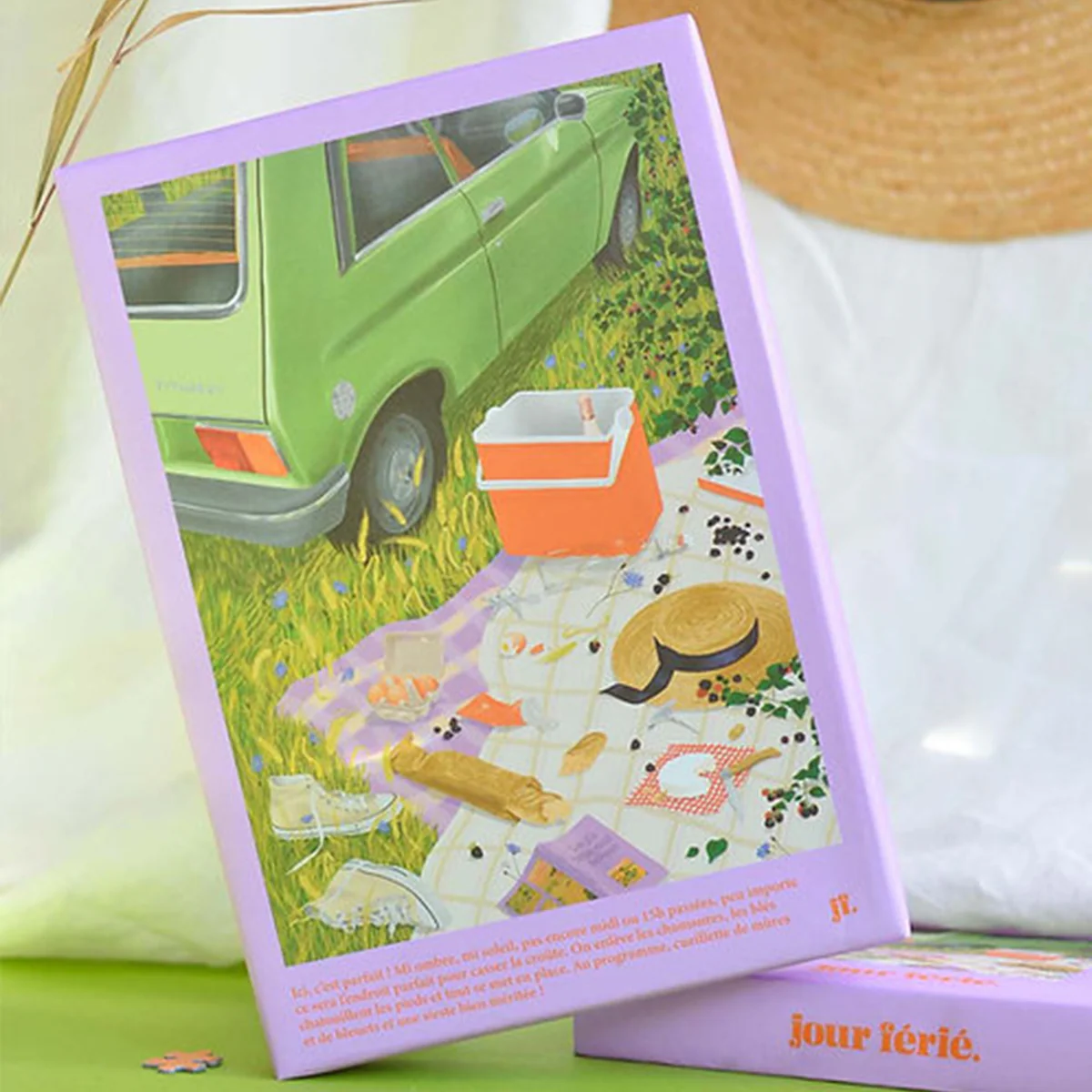 Qui dit départ en vacances, dit... glacière, chapeau de paille et pique-nique de qualité. Imaginé par Jour Férié, le puzzle Le casse-croûte contenant 100 pièces et réalisé de façon écoresponsable nous donne envie de partir en vadrouille et nous étendre le temps d'une pause sur une couverture... avant de repartir de plus belle !
